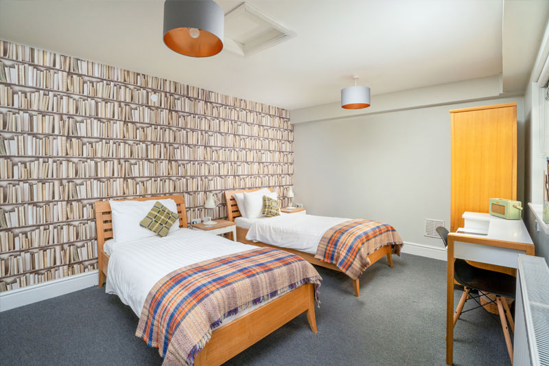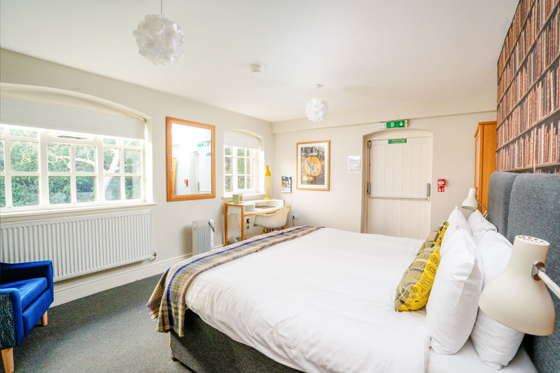 We have two ensuite bedrooms on the ground floor which are general accessible bedrooms with grab handles and wet-room-style bathrooms. Please note that our remaining 24 bedrooms are spread over our first and second floors and the Library does not have a lift. Guests who have restricted mobility should telephone or email Reception to ensure that they are given a ground floor room.